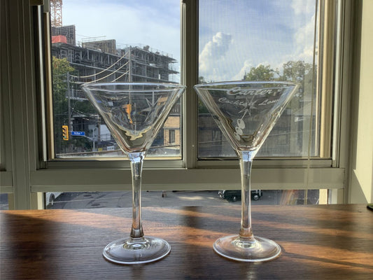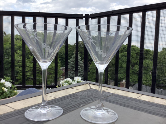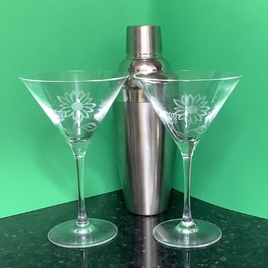 Enhance Your Cocktail Experience with retro glassware and indulge in a touch of nostalgia with a set of 2 etched Martini Glasses.