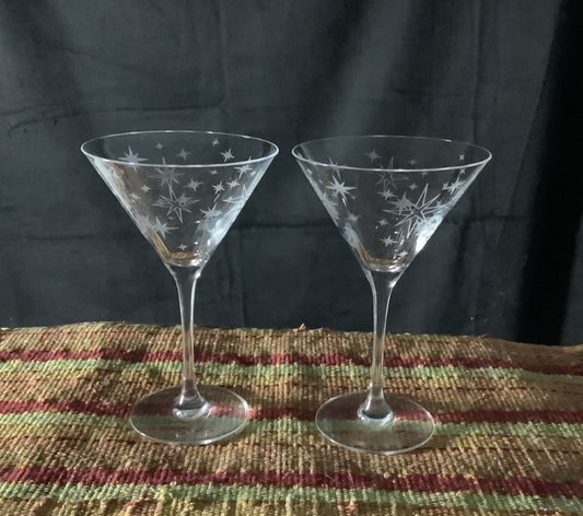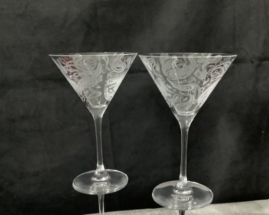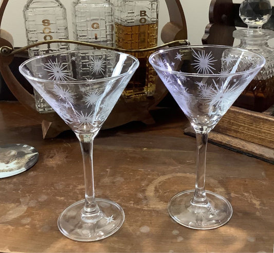 Sets of 2 vintage Cocktail Glasses a functional and stylish addition to any bar, whether it's retro or modern. Etched glasses are perfect for serving up your favorite martini recipe.