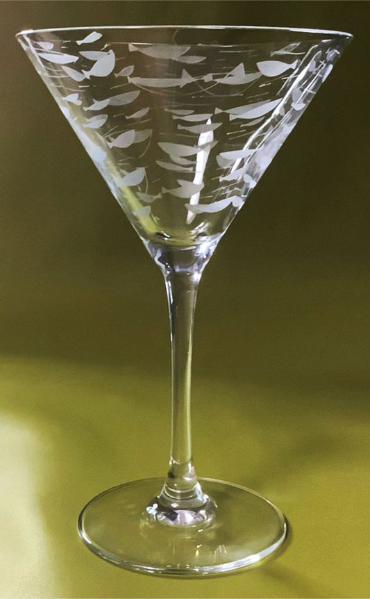 Our Martini Collection, consists of stemmed cocktail glasses that are individually hand etched with a unique selection of vintage patterns.
