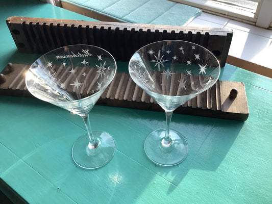 Mid Century Martini Etched Glassware Original Starburst Retro Glassware Etched Retro Glassware Gift Vintage Set of 2 Cocktail Glass Atomic Era Engraved Glass