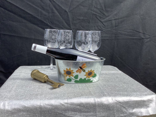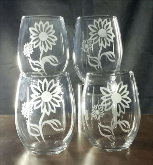 Sunflower Stemless Wine Glasses Cheery Etched Wine Lover Gift Sixties Lover Gift Sunflower Barware 20 ounce Glasses Flower Gift Set of 4
