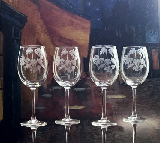 Monstera Plant Wine Glasses Etched Tropical Plant Retro Gift Set of 4 Etched Wine Glassware Table Decor Tropical Monstera Plant Lover Gift 16 oz.