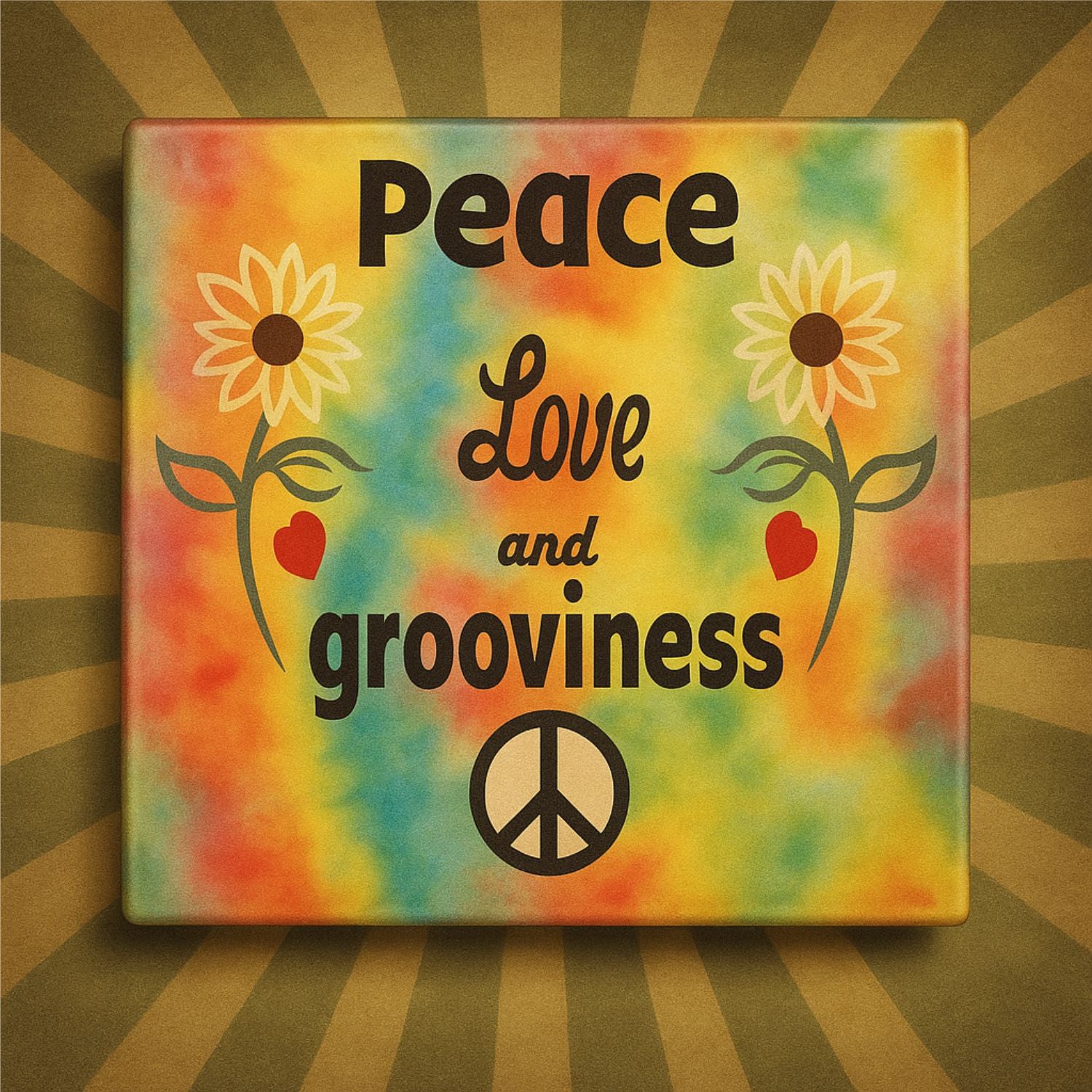 Hippie 60s Peace Love Psychedelic Glass Coasters – Groovy Retro Free Spirit Gift Set of 4
